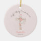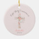 Elegant Communion blush pink floral cross name ornament. Personalise with your name and date.