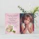 A lovely pink and white bouquet against a pink radiant background creates a beautiful First Holy Communion invitation for a little girl.