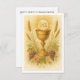 This beautiful First Holy Communion card features a reverent watercolor image of the Holy Eucharist: a radiant golden chalice with the Blessed Sacrament (IHS), flanked by wheat, grapes, and soft florals. The reverse side includes the Anima Christi prayer, a beloved traditional devotion often prayed after receiving Holy Communion. Personalised with the communicant’s name, date, parish, and celebrant, this card is a keepsake of sacramental grace and Eucharistic love.
