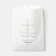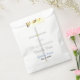Son First Holy Communion Thank You Paper Favour Bags with simple hand-painted Silver Cross with Gold Accents. Personalise name in blue script and date in black text against white background. Original Graphic Artwork and Design © TamiraZDesigns.