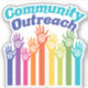Beautiful community outreach design for communities to help their citizens with government and non-profit programs. A cute rainbow of hands reaching to help others.