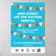 Make your street festival a success with this easy to customise event poster. Design features colourful banners of flags. Information is layout in playful yet easy to read typeface. Simply plug in the name of your event, date & time, and description. Attract donors by including sponsors' logos or name at the bottom.