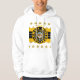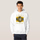 Hoodie white with black, gold and white concentric-circles design, above a black, white and gold rectangle with "COLUMBIA, MISSOURI CENTER OF THE UNIIVERSE" with The Great Seal of Missouri at the centre and with Y-NOT-ME logos in the background. This design is a shout-out to Columbia, Missouri, a city on the move.