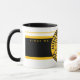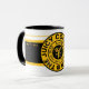 Mug black and white 11oz. with a circle over a rectangle black and gold with "THE JUICY COFFEEBEAN" inside the circle with "Columbia, MO GO TIGERS!!!" also with the Y-NOT-ME logo. This design is a shout-out to the great state of Missouri, the SHOW-ME state. Also, to a growing and progressive city, Columbia, Missouri.