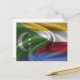Postcard with the flag of Comoros in wavy fabric style design. This design features the Comorian flag colours and design with a beautiful waving material textured effect. This flag design is a great way to show you are proud to be from Comoros.