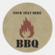These stickers are perfect for company BBQ's or Family Reunions! It features a worn out paper texture background with a flame illustration on top. Above the flame is an area for you to add your company name, family name or any other text you may have. Below the flame are the letters "BBQ" in bold text.