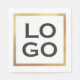 This professional custom napkin features a white background with a sample company or business logo placed in the centre. A gold foil style frame borders the napkin. You can personalise it to add your own company, organisation, or business logo, or other custom image.