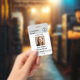 A modern minimalist personalised company employee ID badge with business logo, photo and details. Personalise with your logo, photo and details to create your own unique elegant white business badge.