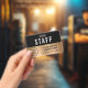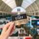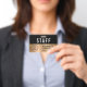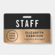 Modern professional staff, employee or crew identification badge for your business, event, conference or convention featuring your business or organisation's logo against a gold faux metallic background. Add a name and job title or the event and date.