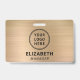 Modern name badge with your company or organisation's logo against a brushed gold faux metallic background. Add a name and title in simple typography.