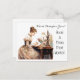A beautifully illustrated Victorian Woman, poised and elegant, sits at her Antique Writing Desk. Her thoughtful gaze rests on the open pages before her, surrounded by ink bottles, quills, and delicate stationery. The soft glow of a nearby lamp casts a warm light, evoking a sense of Calm and Creativity. Above her, the phrase "We’re Here for You!" is delicately scripted in a vintage, flowing font. Below, a simple yet inviting call to action reads, "Book A Time That Works," inviting the viewer to take the first step towards their own journey of Success and Growth. This Business Postcard captures the essence of Possibility and Inspiration.