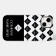 Phone case you can personalise with your logo placed in a seamless pattern, another logo against a black background, and your name or business name.