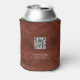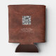 Company Name Logo QR Code Brown Faux Leather Can Cooler