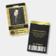 These photo ID badges have a gold-and-black colour theme. They include your employee's photo, name, and job title on the front, plus the name of the corporation / company and business logo. The back includes room for "if found" information (including address and phone number), plus space for an ID number and a bar code. The design also includes a grid pattern background and a line graph theme. Use the easy template to personalise, and then use the design tool to make more detailed changes (such as adjusting the size of the logo or barcode or deleting and rearranging elements). This eye-catching design is perfect for an office manager, administrative assistant, executive, or any business employee.