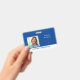Blue and White Background photo Name Badge. Logo.