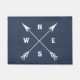 Compass illustration with arrows and north, east, south, west decoration on blue grunge background