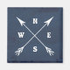 Compass illustration with arrows and north, east, south, west decoration on blue grunge background