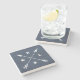 The coasters are gorgeous, a quality feel and heavy weight. They look like a precious archeological find. A rustic stone juxtaposed with a modern floral black and white print. I like the way the print goes slightly imperfect on the cut stone edges giving them a kind-of natural beauty.