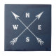 Compass illustration with arrows and north, east, south, west decoration on blue grunge background
