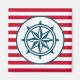 Nautical design with compass decoration on red and white striped background
