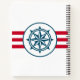 Nautical design with compass decoration on red and white striped background