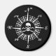 Compass rose design with a pirate skull and crossbones centre. Black and white graphic on t-shirts, hoodies, cards, gifts.