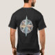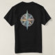 A compass rose with a three gear bicycle cassette background. Full size on the back, smaller version on upper left front.