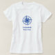 A large dark blue compass rose dominates the front of this nautical-themed t-shirt. Customise it with the name of your boat and crew.