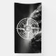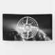 Compass star with black and white photograph of dramatic snowy mountains with milky clouds. With emblems wanderlust, nature, travel and explore that are customisable so you can write your own texts. In the centre of the star is a personalised monogram. Perfect for nature lovers hikers and travellers.