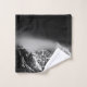 Compass star with black and white photograph of dramatic snowy mountains with milky clouds. With emblems wanderlust, nature, travel and explore that are customisable so you can write your own texts. In the centre of the star is a personalised monogram. Perfect for nature lovers hikers and travellers.