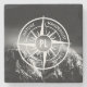 Compass star with black and white photograph of dramatic snowy mountains with milky clouds. With emblems wanderlust, nature, travel and explore that are customisable so you can write your own texts. In the centre of the star is a personalised monogram. Perfect for nature lovers hikers and travellers.