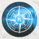 Compass star with a photo of a fog in a frosty winter spruce forest with emblems wanderlust, nature, travel and explore that are customisable so you can write your own texts. In the centre of the star is a personalised monogram. Perfect for nature lovers hikers and travellers.