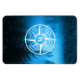 Compass star with a photo of a fog in a frosty winter spruce forest with emblems wanderlust, nature, travel and explore that are customisable so you can write your own texts. In the centre of the star is a personalised monogram. Perfect for nature lovers hikers and travellers.