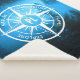 Compass star with a photo of a fog in a frosty winter spruce forest with emblems wanderlust, nature, travel and explore that are customisable so you can write your own texts. In the centre of the star is a personalised monogram. Perfect for nature lovers hikers and travellers.