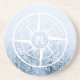Compass star with a photo of a fog in a frosty winter spruce forest with emblems wanderlust, nature, travel and explore that are customisable so you can write your own texts. In the centre of the star is a personalised monogram. Perfect for nature lovers hikers and travellers.