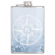 Compass star emblem monogram winter spruce forest hip flask