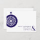 A wedding r.s.v.p. featuring a navy blue compass at left with matching text at bottom right and on reverse. Look for matching wedding and save the date invitations at Jill's Paperie.