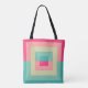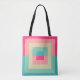 This image features a bold geometric design with concentric squares in alternating colours, creating a split-gradient effect. The palette moves through moss green, golden yellow, bright orange, magenta, and deep plum, giving an energetic and modern visual impact. The image is perfectly symmetrical, with the colours creating an eye-catching sense of depth and structure.