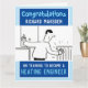 Congratulations on plumbing and heating qualification. Heating Engineer is checking a gas boiler. Fun cartoon illustration. Personalise with your choice of name. Congratulations card for a newly qualified heating engineer or plumber.
