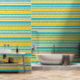 Complex Stripes - Turquoise and Yellow Wallpaper