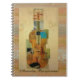 This notebook cover features a violin that has been puzzled together from the parts of many different instruments, displayed on a wood-grain background. The name that is shown can be deleted, if preferred, or edited to reflect a name or message to personalise this unique item.