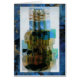 Three layers of violin collages, formed from parts of many instruments puzzled together, create unexpected shadows and highlights.