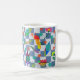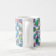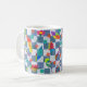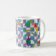 Give your moments of coffee or tea a touch of color and elegance with this beautiful cup decorated with modern design. Its blue square background brings depth and harmony, while the patterns of leaves and flowers overlapped in different colors create a unique and striking composition. This cup is ideal for lovers of art, nature and modern design. A special gift for friends, family, colleagues or even for yourself.