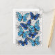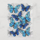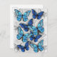 Vertical composition of realistic, blue and white morpho butterflies on grey textured background. Morpho blue butterfly.