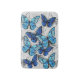 Vertical composition of realistic, blue and white morpho butterflies on grey textured background. Morpho blue butterfly.