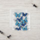 Vertical composition of realistic, blue and white morpho butterflies on grey textured background. Morpho blue butterfly.