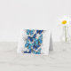 Vertical composition of realistic, blue and white morpho butterflies on grey textured background. Morpho blue butterfly.