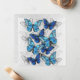 Vertical composition of realistic, blue and white morpho butterflies on grey textured background. Morpho blue butterfly.
