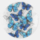 Vertical composition of realistic, blue and white morpho butterflies on grey textured background. Morpho blue butterfly.