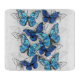Vertical composition of realistic, blue and white morpho butterflies on grey textured background. Morpho blue butterfly.